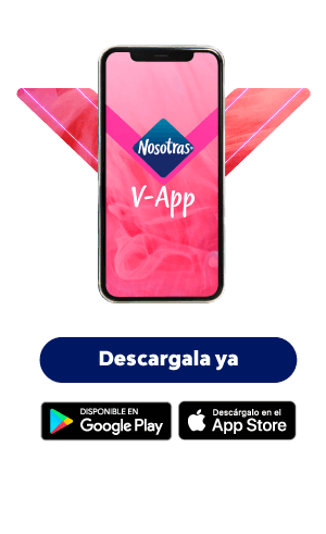 Conoce a Nosotras V-app, tu aplicación de calendario menstrual donde podrás hacer seguimiento de tu periodo, de tus días fértiles y síntomas de tu ciclo; además podrás activar recordatorios para no olvidar el autoexamen, cambiar tu toalla higiénica y tomar tus anticonceptivos.